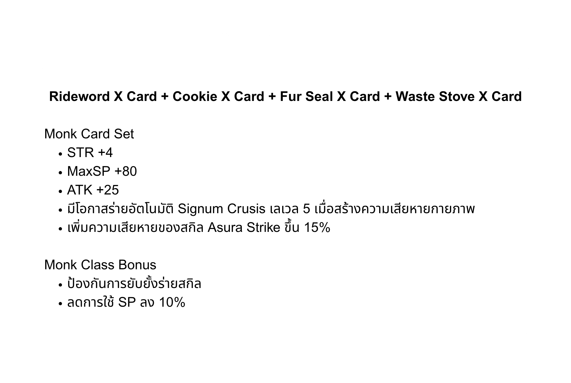 | Enriched Oridecon | 300 Card Fragment | 2 ครั้ง / ID |