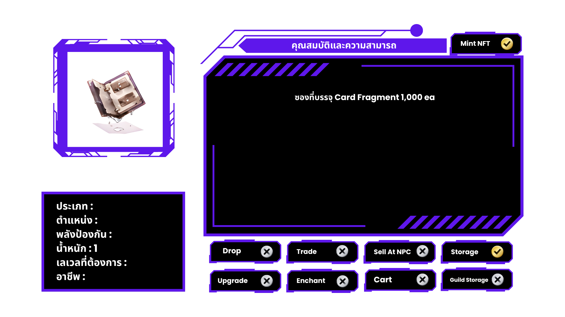 - โดยผู้เล่นจะต้องมีการ์ดที่ต้องการจะอัปเกรด และ Card Fragments จำนวน 1,000 ea