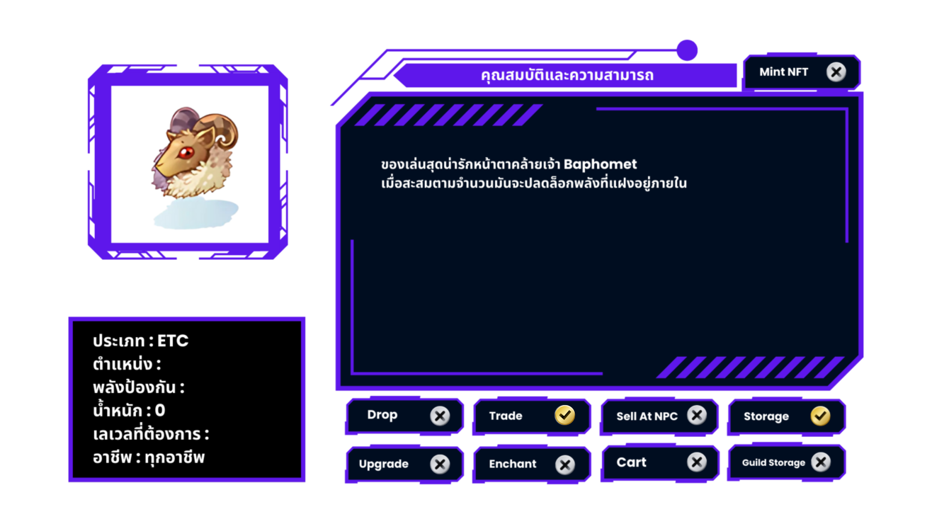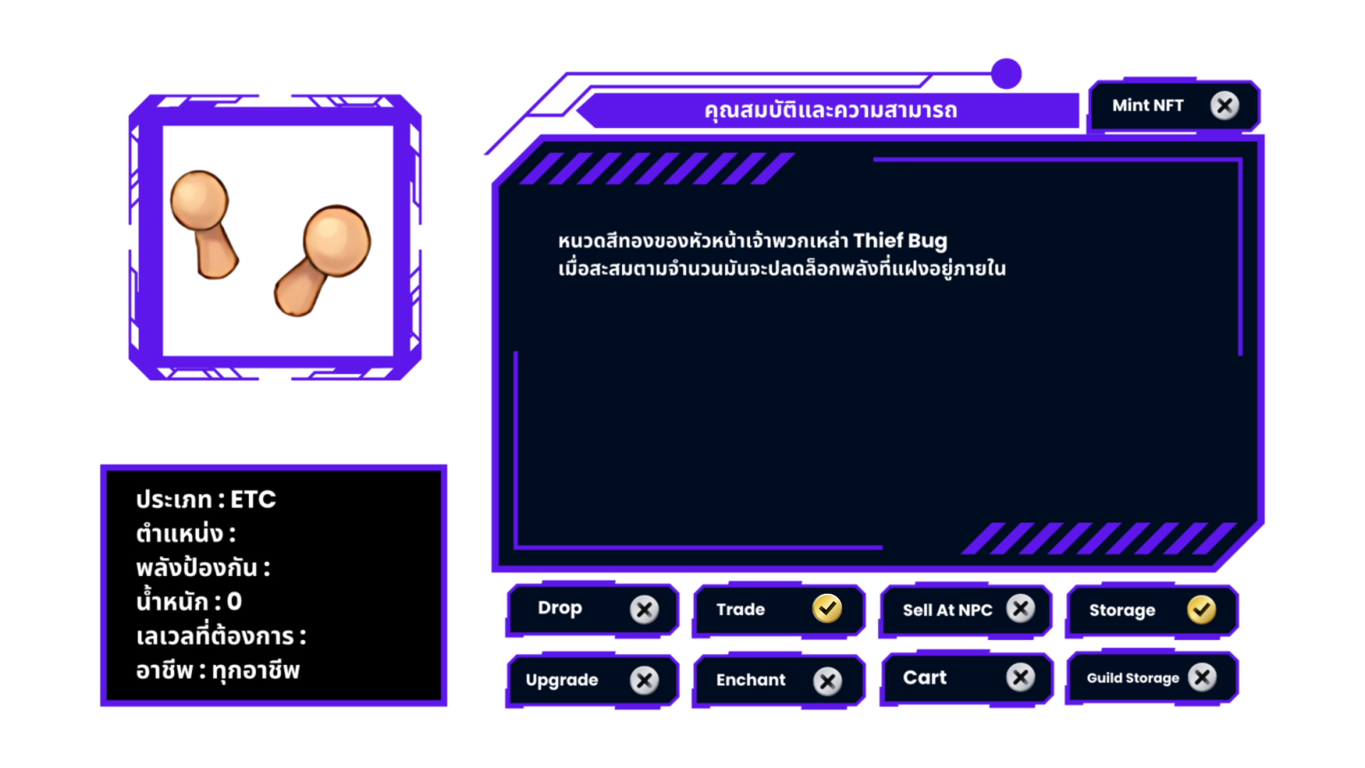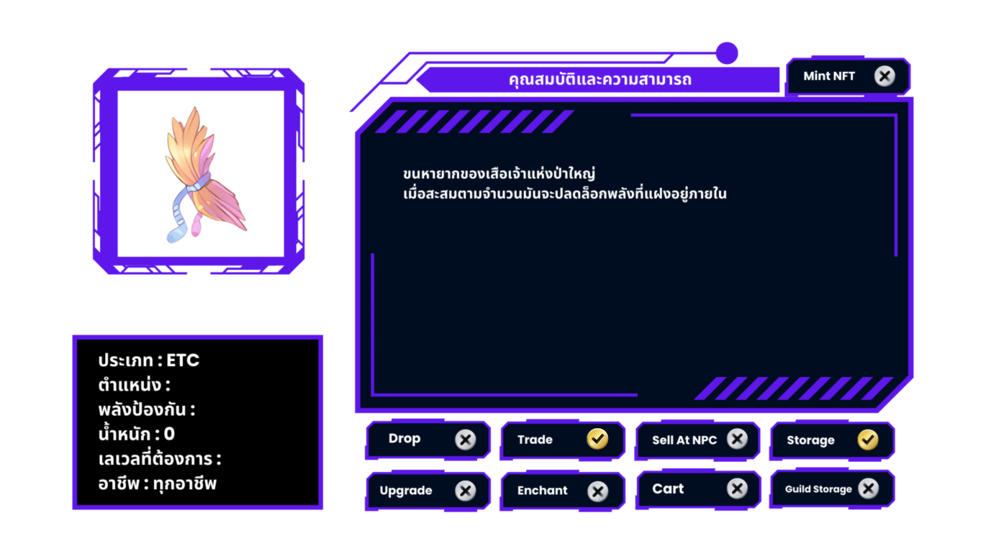 รายการไอเทม | Status ที่ได้รับ เมื่อฝากเข้า Collection | |||