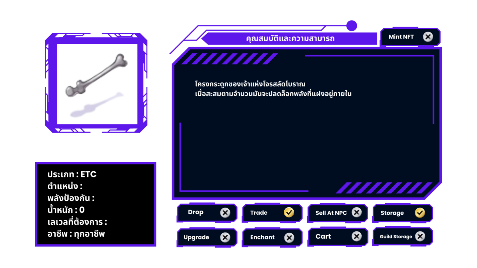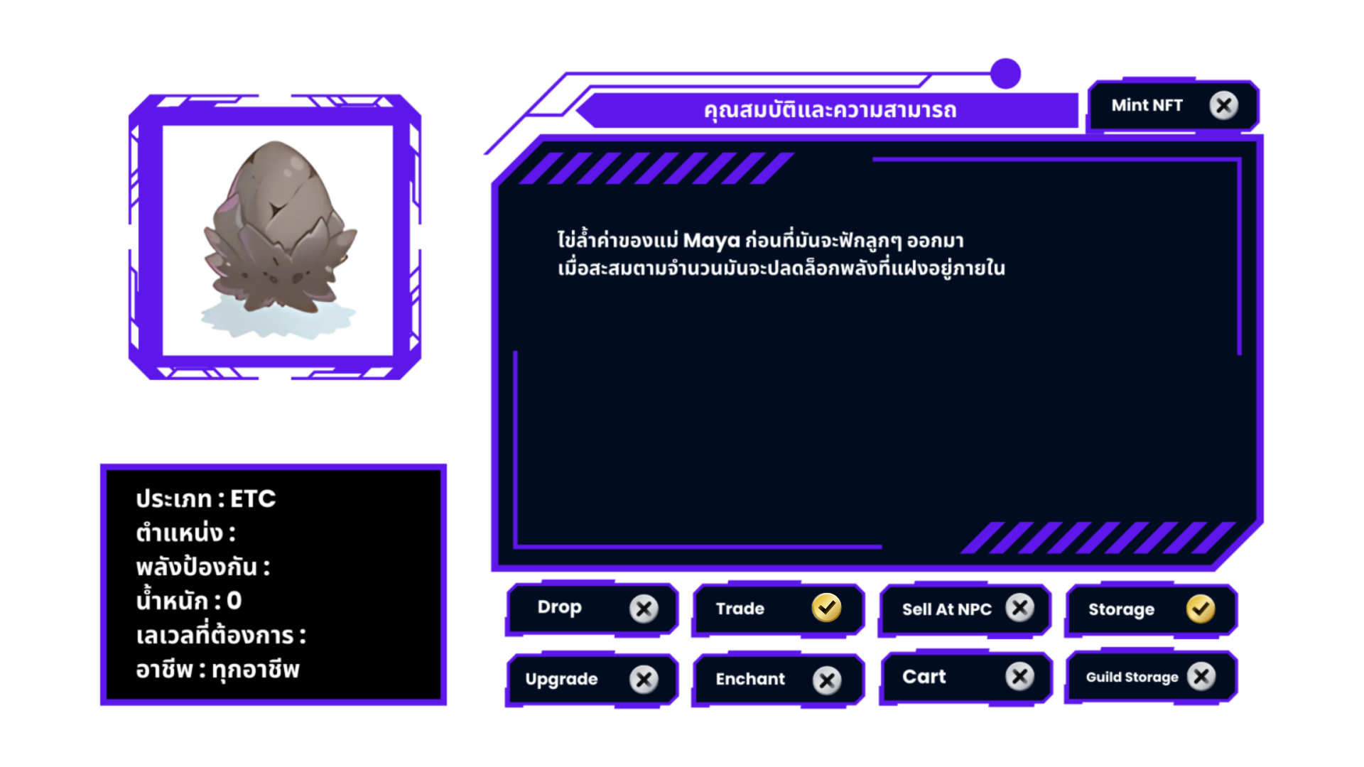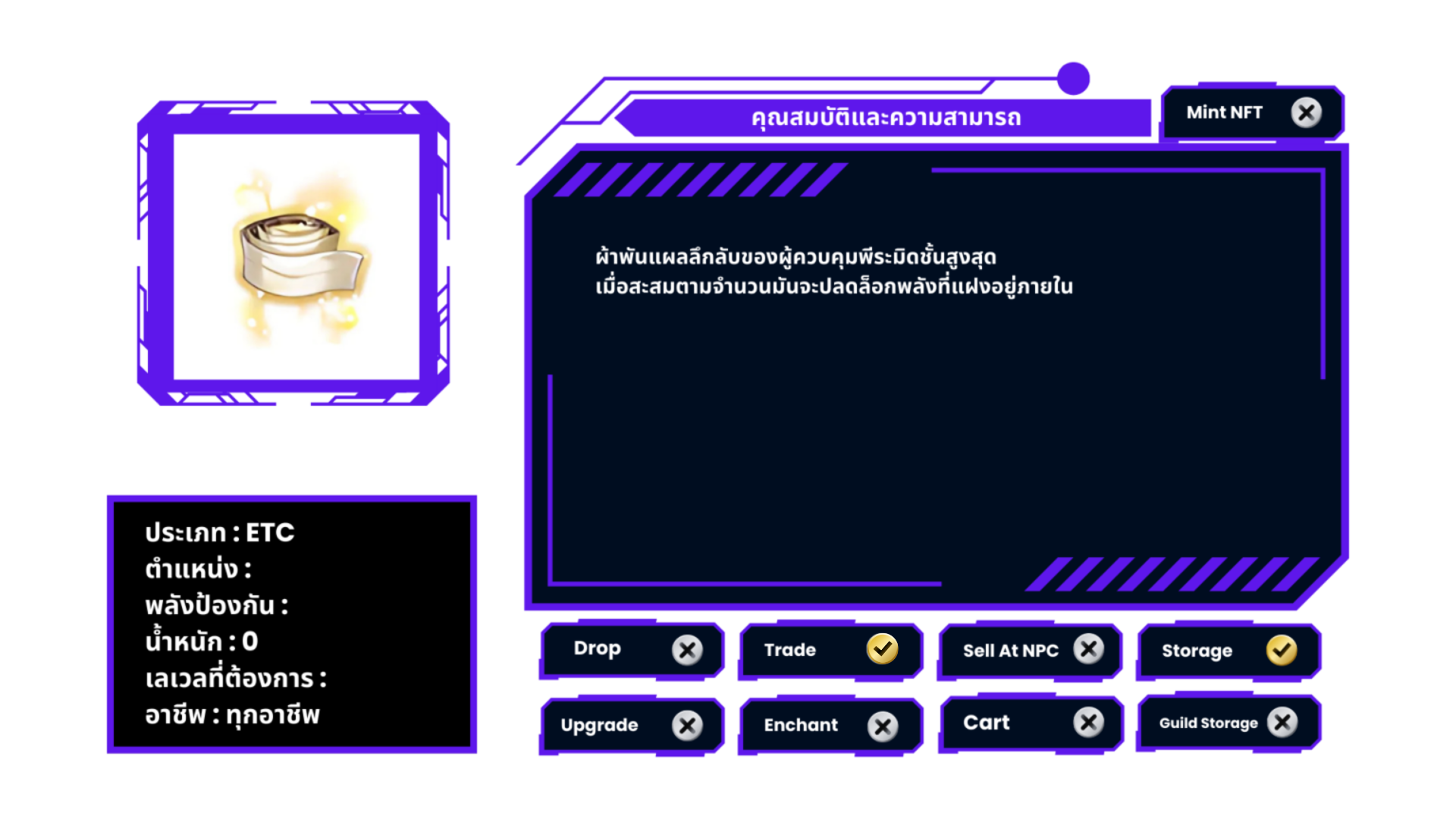 รายการไอเทม | Status ที่ได้รับ เมื่อฝากเข้า Collection | |||