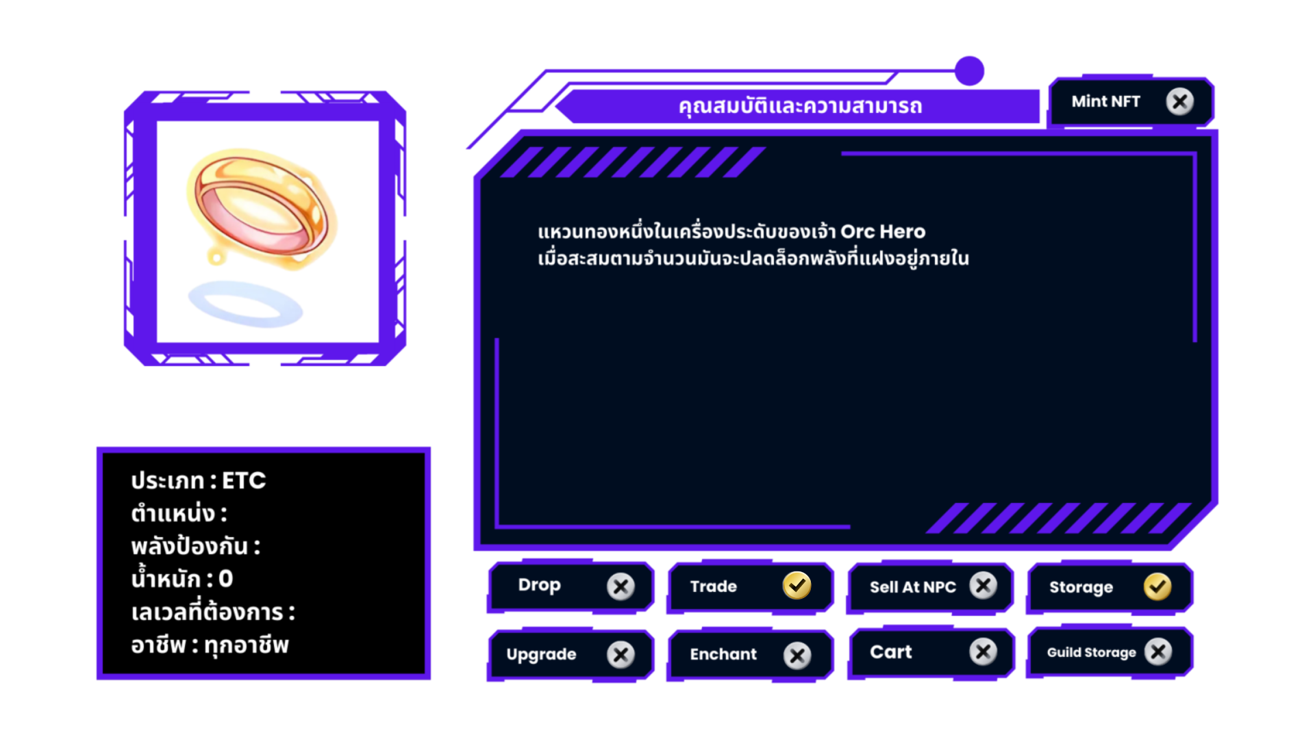 Costume Helmet of Orc Hero | เพิ่มพลังป้องกันต่อมอนสเตอร์ประเภทกึ่งมนุษย์ 3% (รวมถึงผู้เล่น) |
