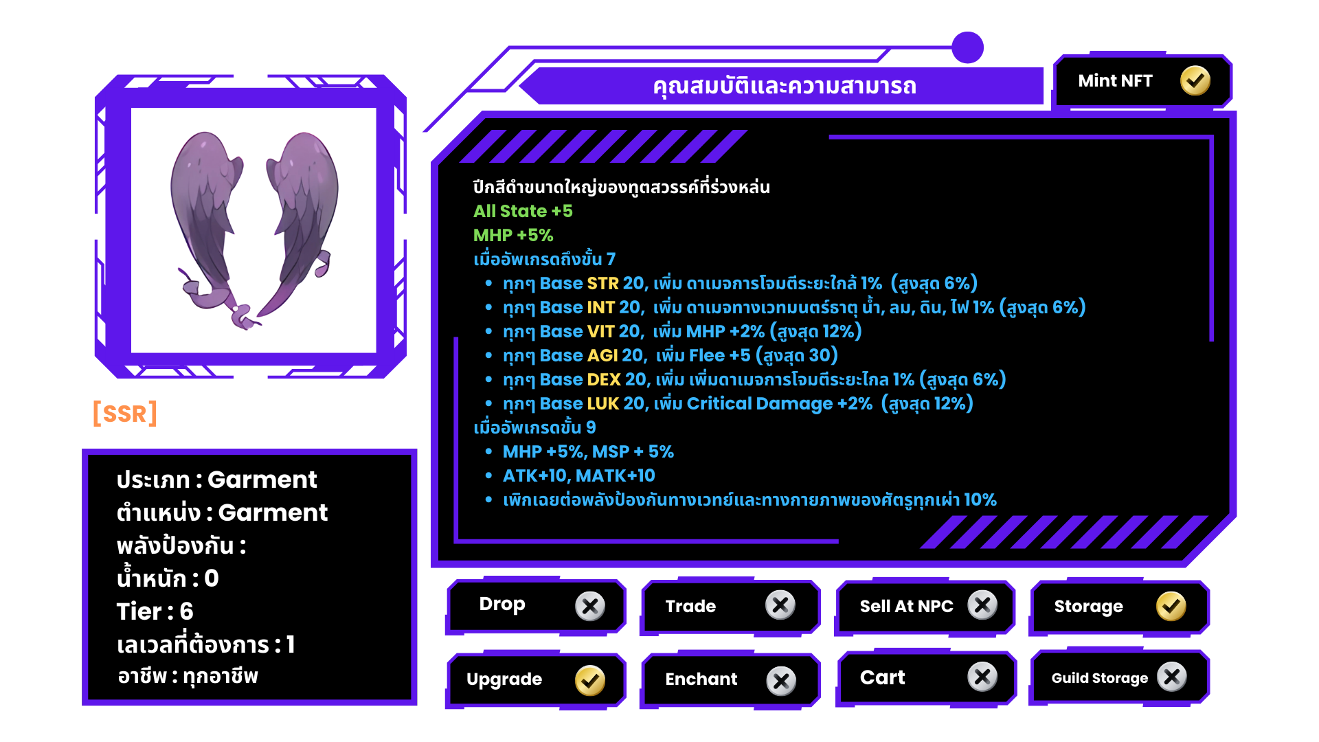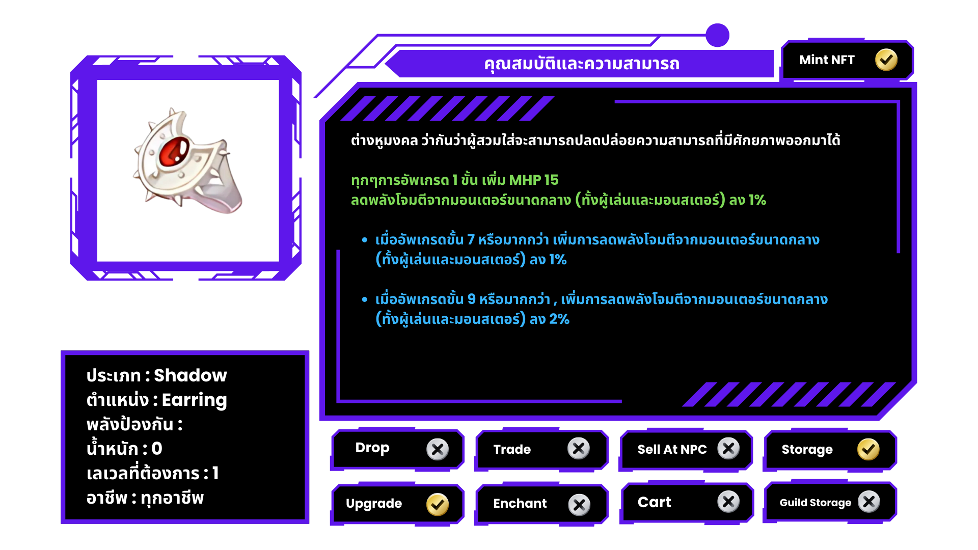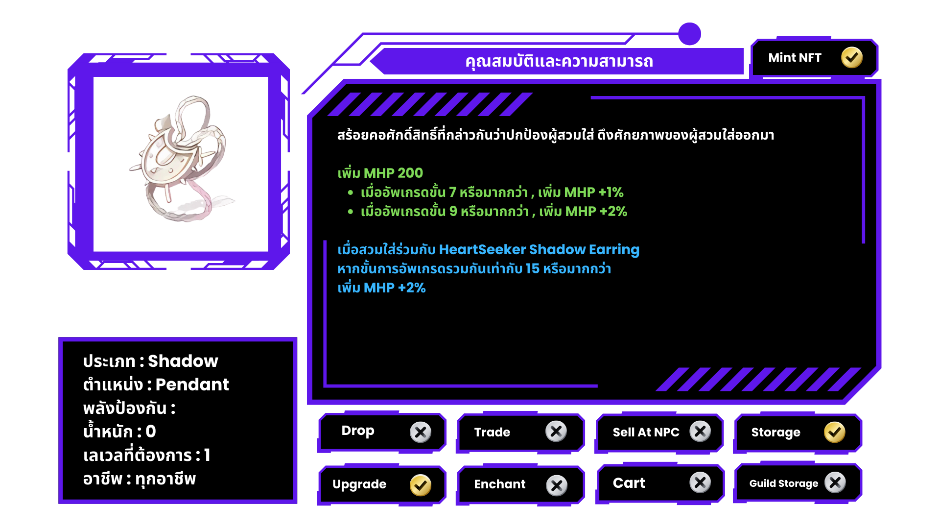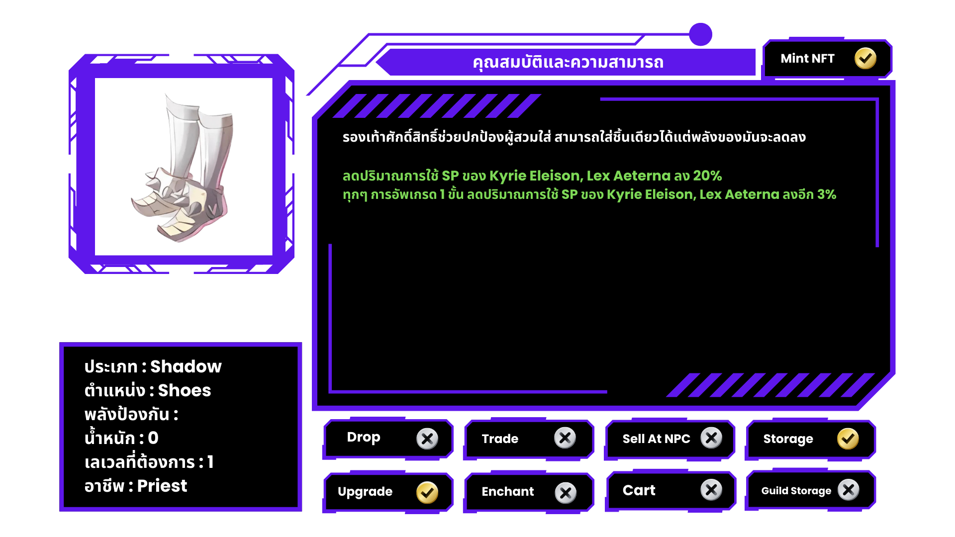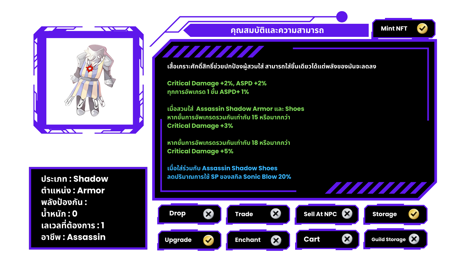 • ใช้ Shadow Armor +7 และ Shadow Shoes +7 ของอาชีพเดียวกัน