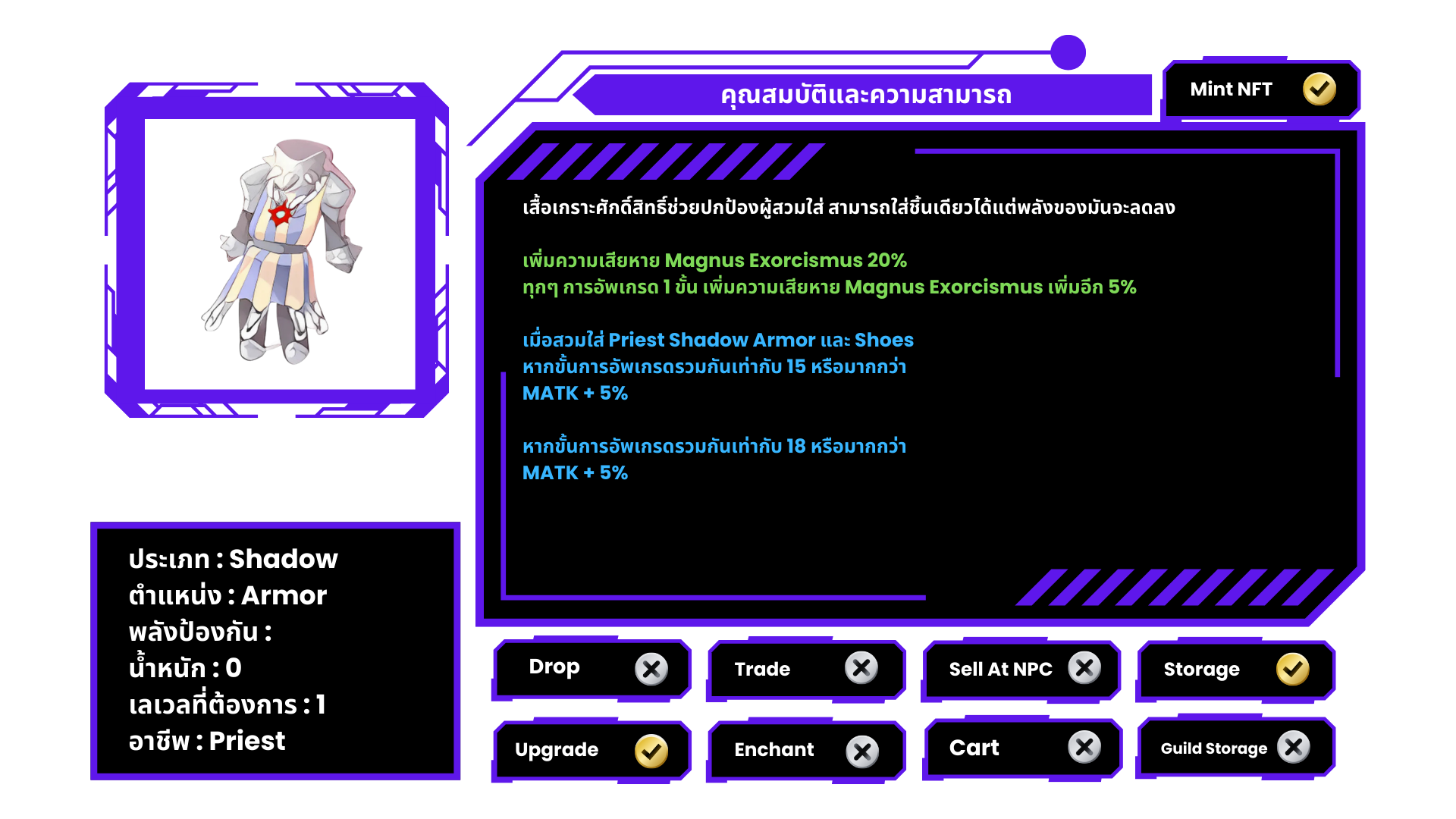 → แลกเป็น High Priest Shadow Weapon