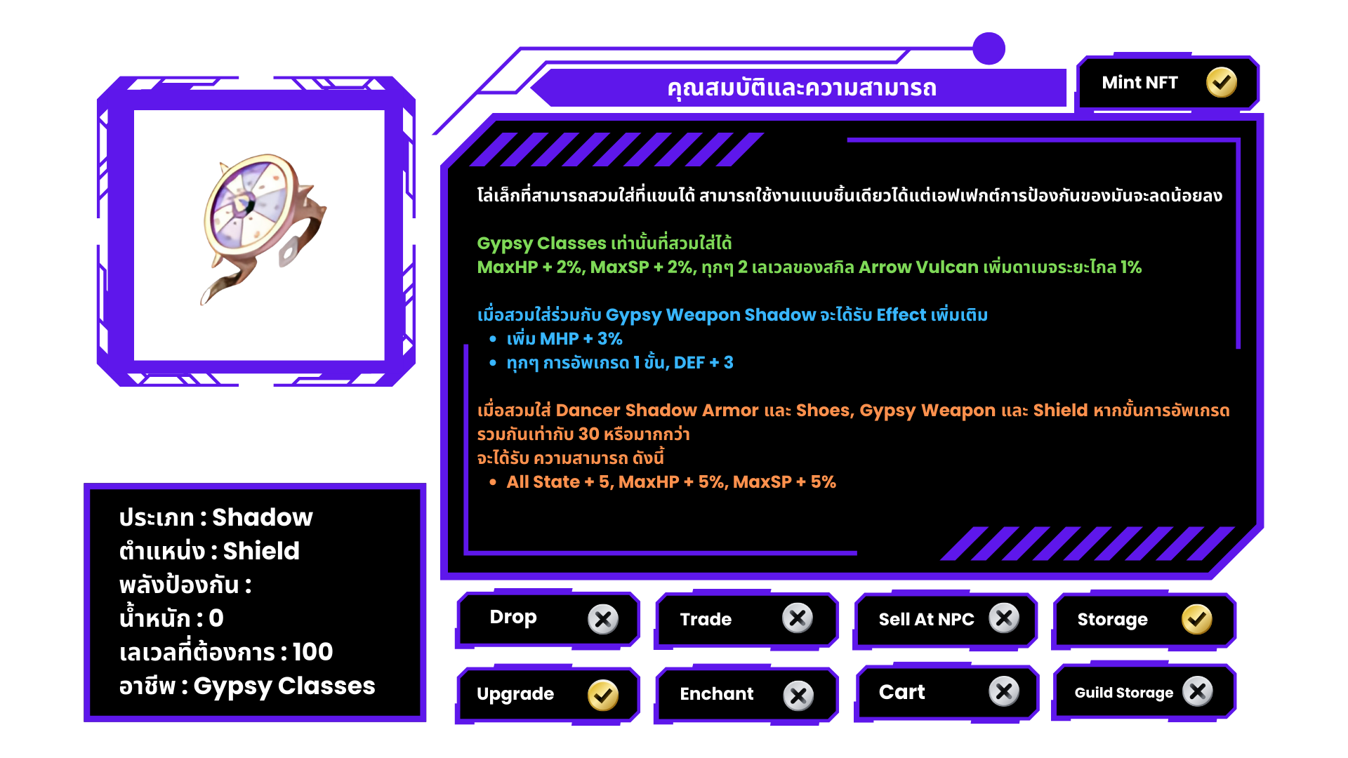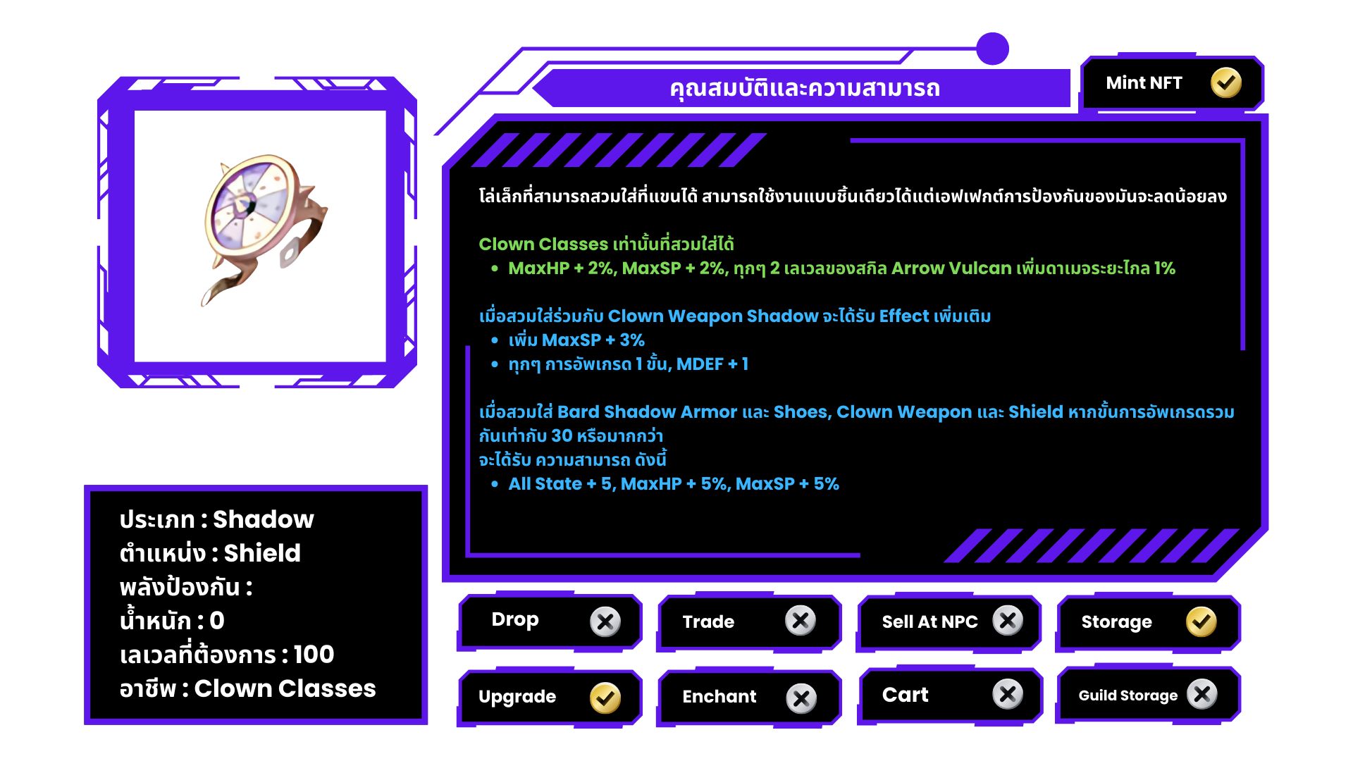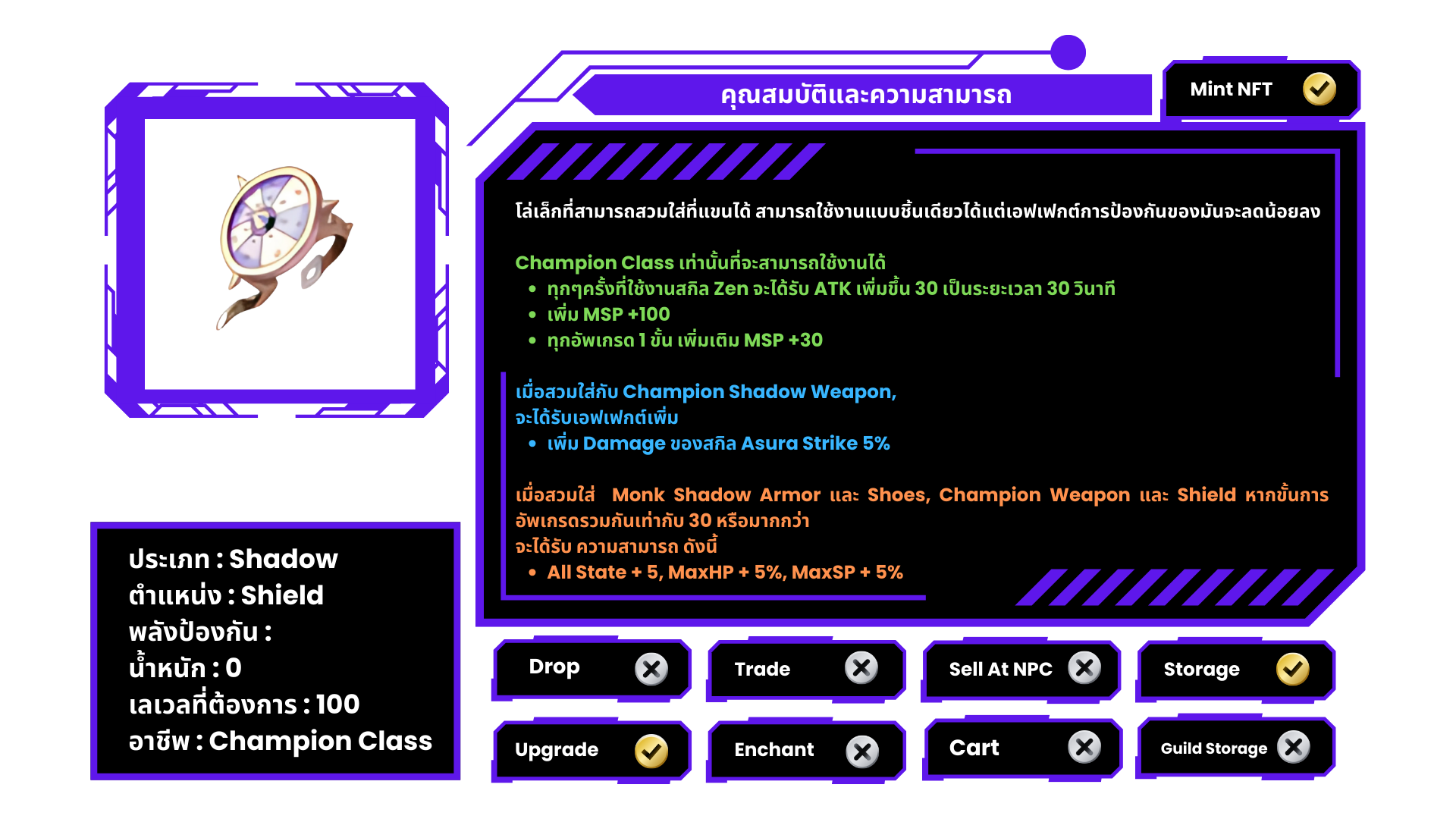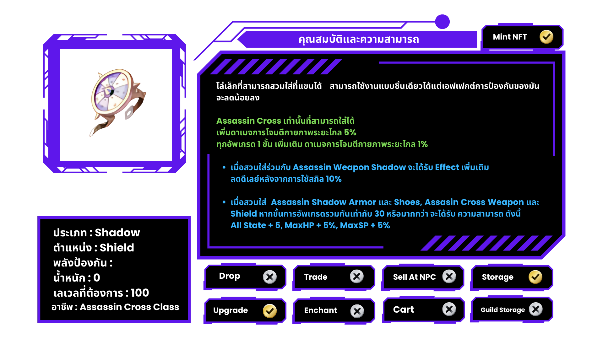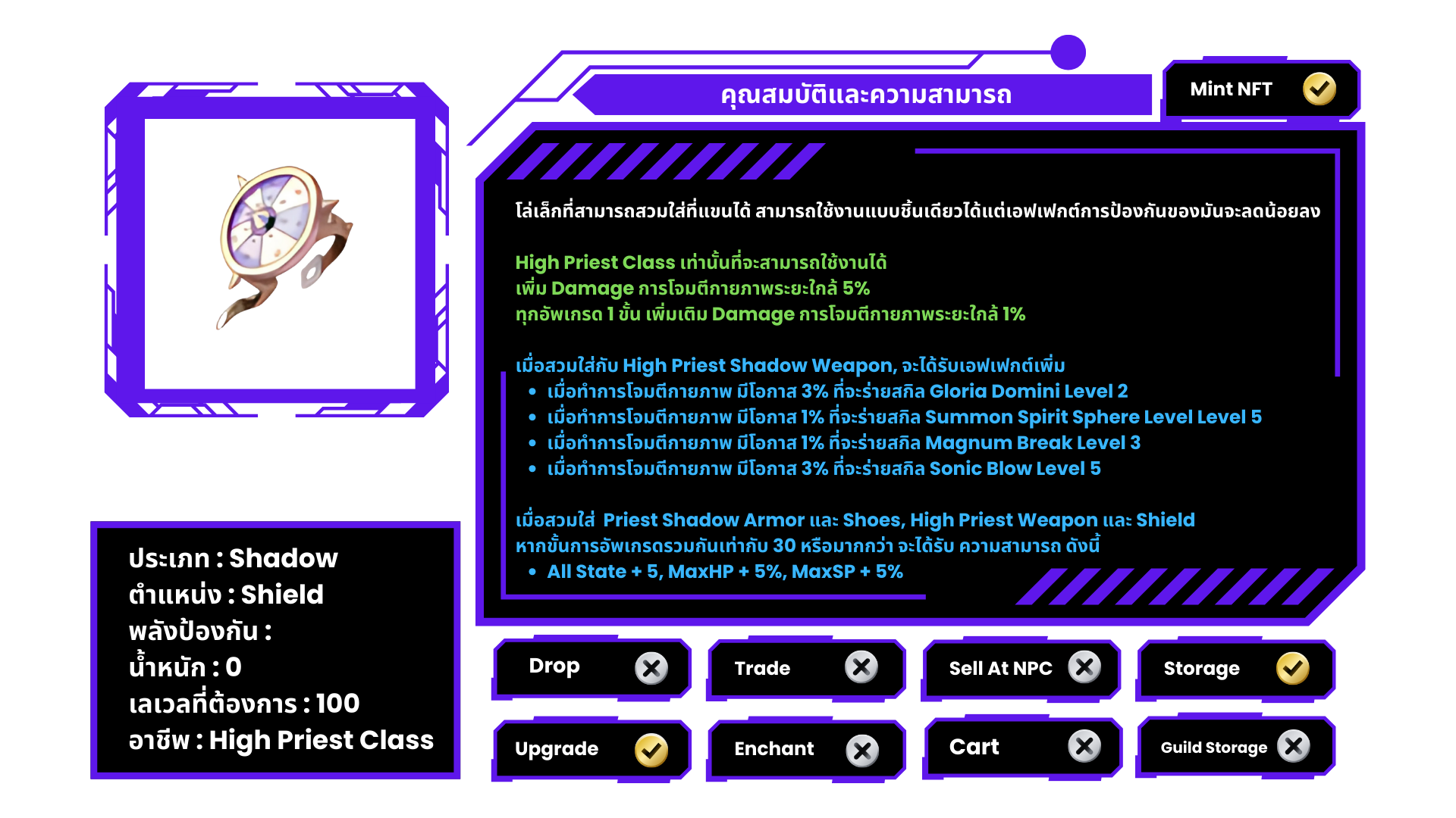 • เมื่อนำมาที่ร้านค้า จะสามารถแลกเป็น High Class Shadow 1 ชิ้นได้ทันที