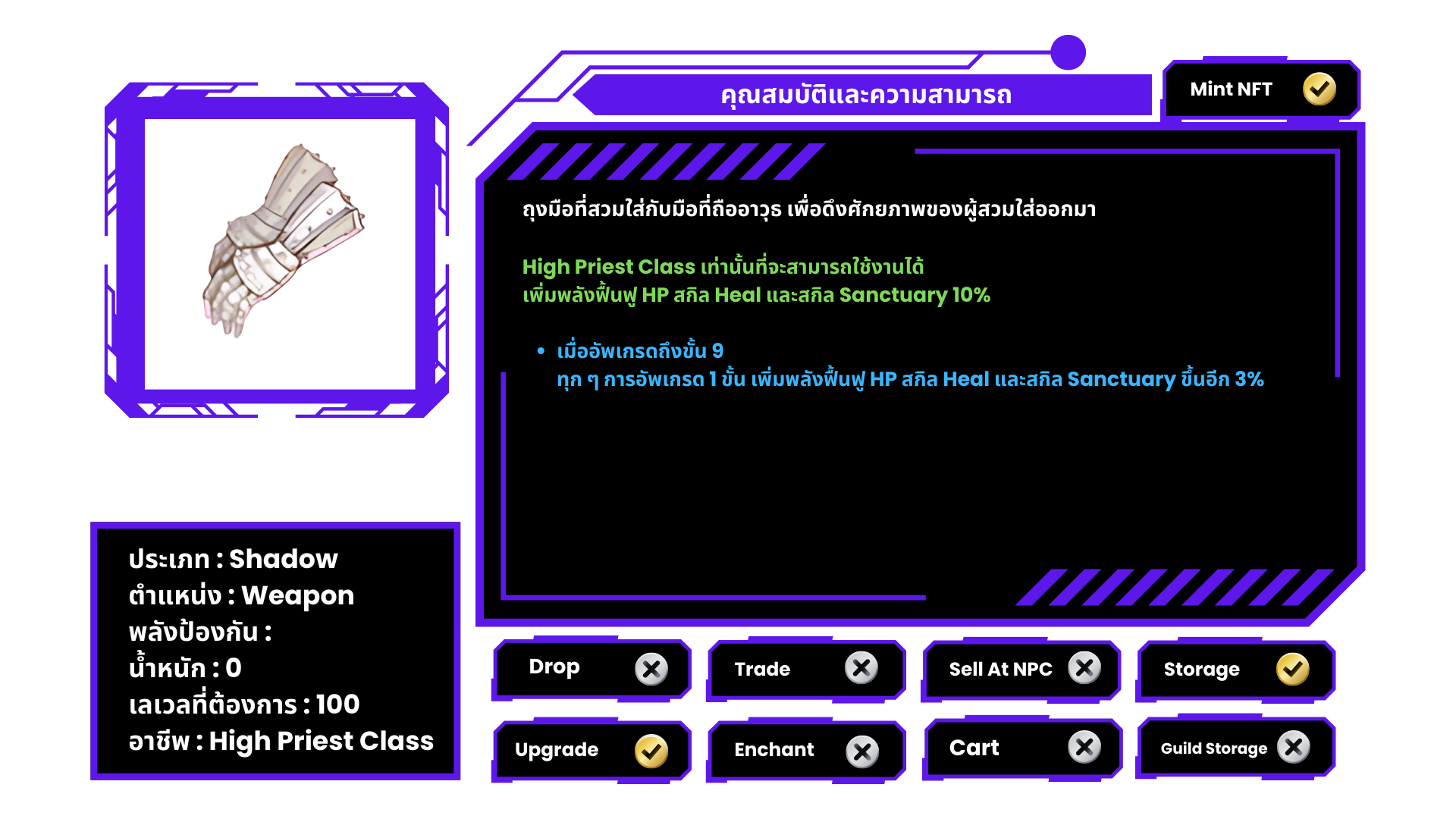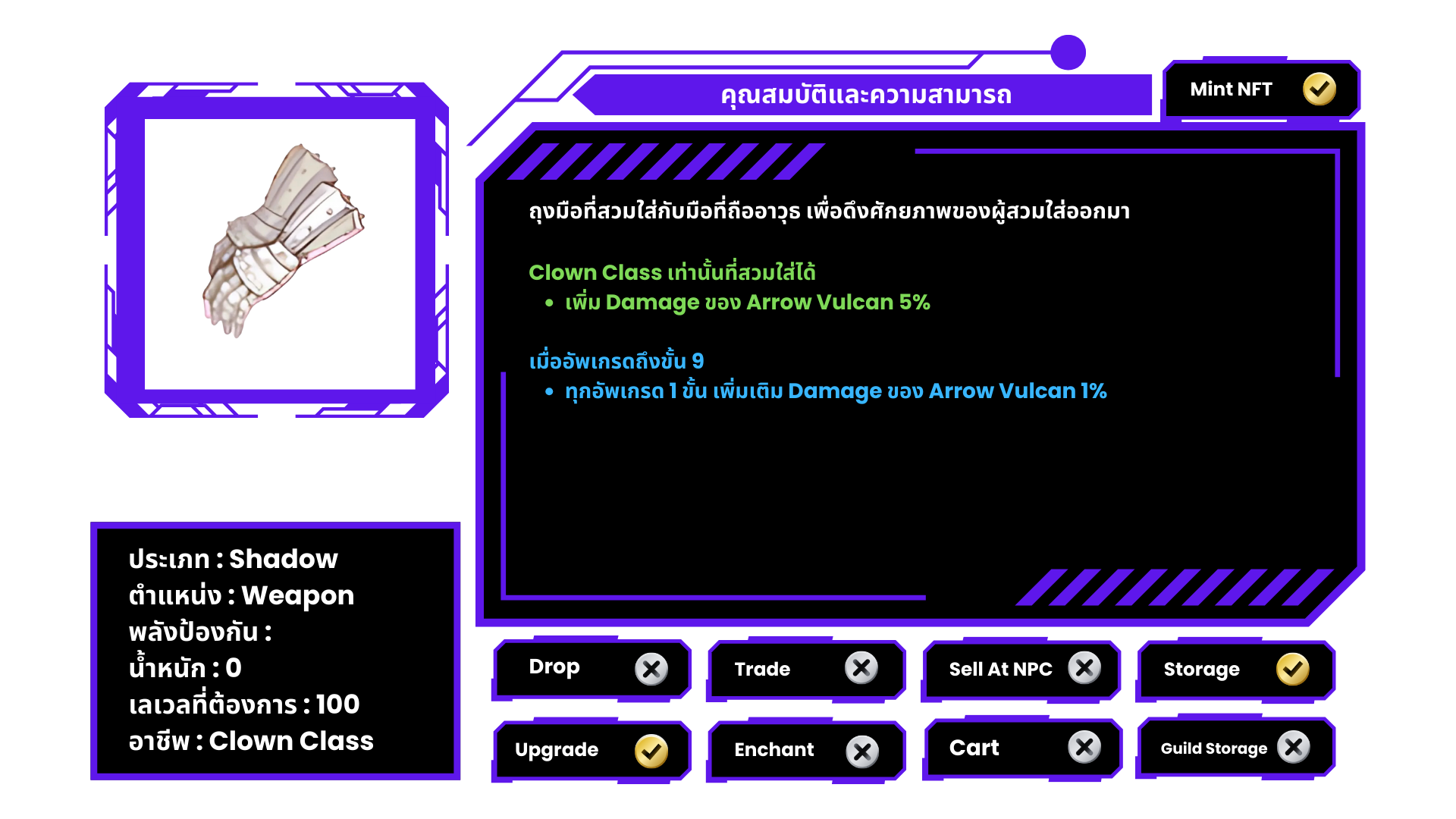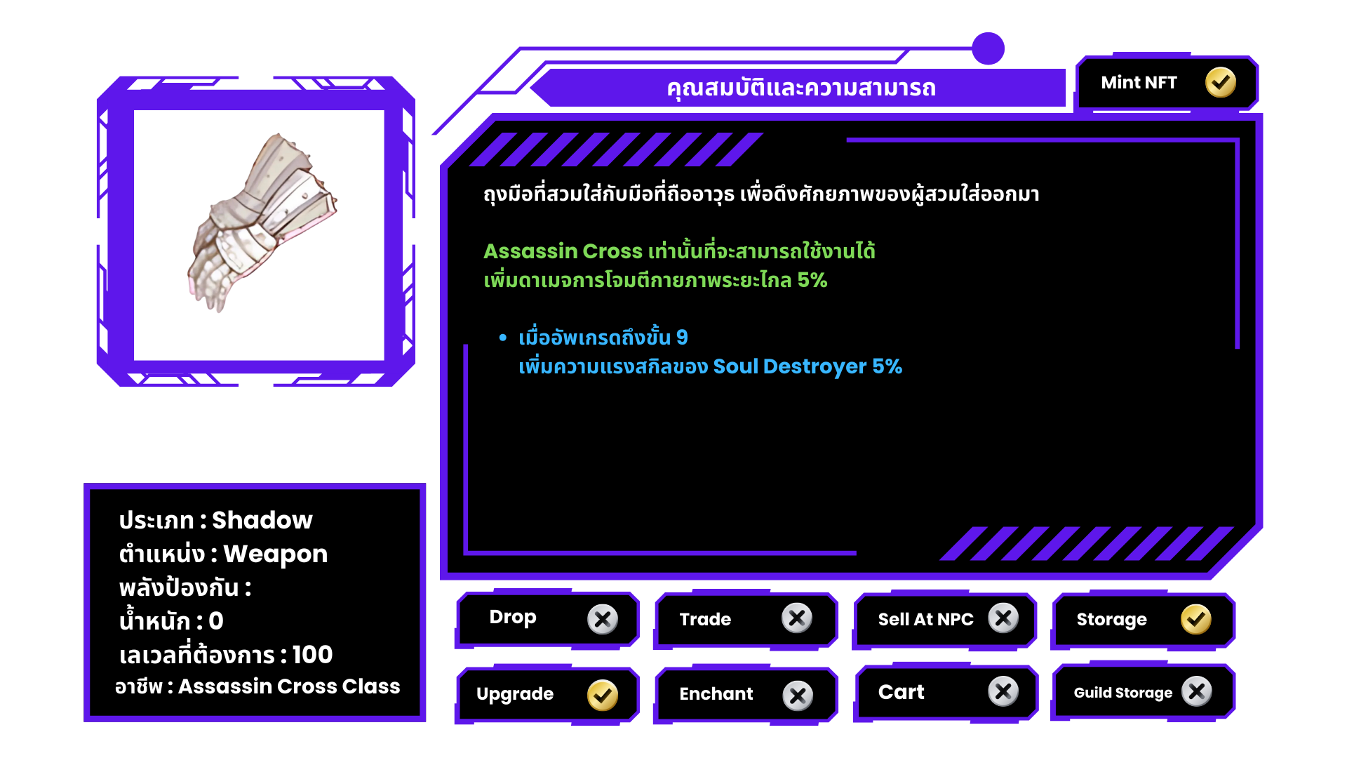 • ใช้ Shadow Armor +7 และ Shadow Shoes +7 ของอาชีพเดียวกัน