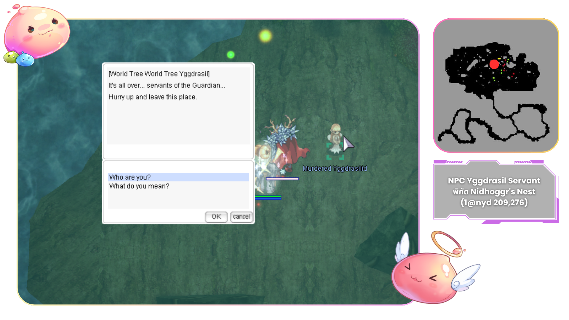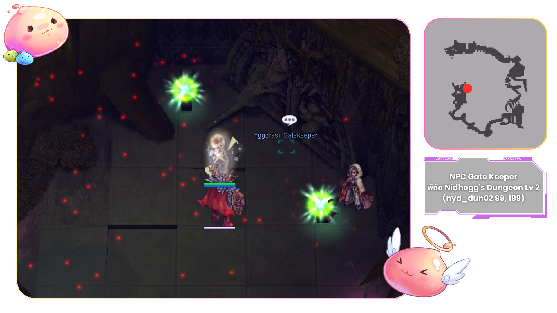 ให้ หัวหน้าปาร์ตี้ พูดคุยกับ Yggdrasil Gatekeeper ที่พิกัด (nyd_dun02 99, 199)