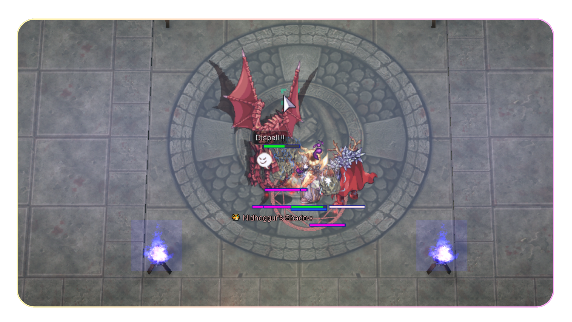 ในขณะที่ต่อสู้กับ Nidhoggur’s Shadow นั้น ปาร์ตี้ทั้งหมดจะถูกวาร์ปไปยัง ห้องด้านข้าง 1 ใน 4 ห้อง โดยประมาณทุก 3 นาที ในห้องนั้น