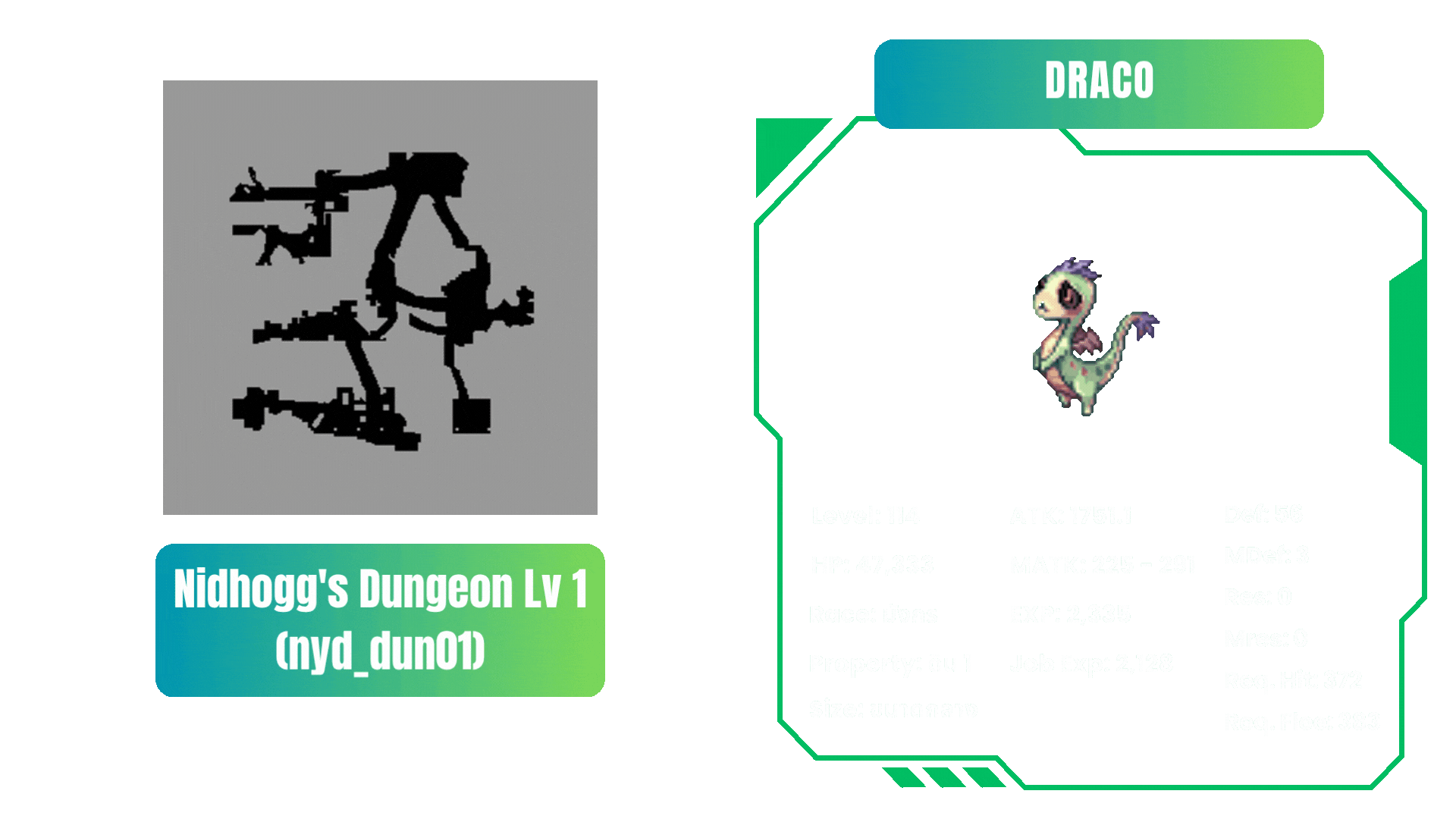 | Dragon Vest [1] | ชุดเกราะ (Armor) ชุดชั้นในที่ทำจากแผงคอของ Draco (มังกร) คุณสมบัติไอเทม คลาส: เกราะ (Armor) DEF: 20 น้ำหนัก: 50 เลเวลที่ต้องการ: 1 อาชีพที่ใช้ได้: Lord Knight, Master Smith, Assassin Cross, High Priest, High Wizard, Sniper, Paladin, Biochemist, Stalker, Champion, Scholar, Minstrel, Gypsy . เอฟเฟกต์พื้นฐาน Mdef + 3 โบนัสเซ็ต (Set Bonus) เมื่อสวมใส่คู่กับ Dragon Manteau [1] Agi + 5 Flee + 15 |
