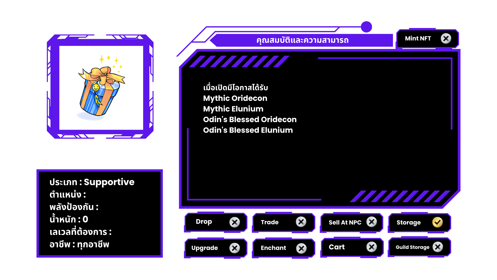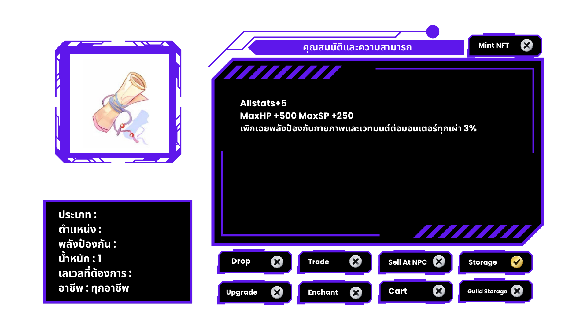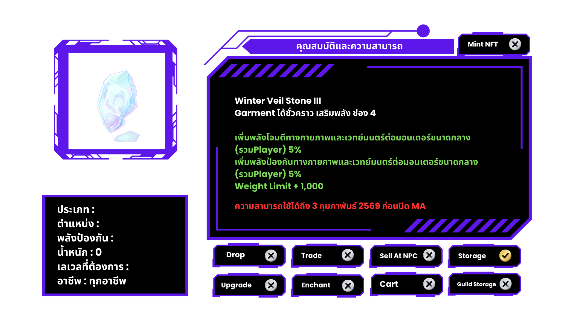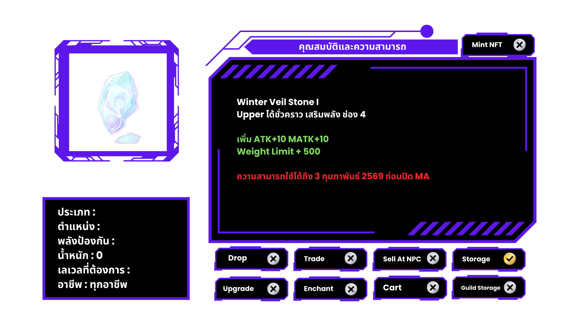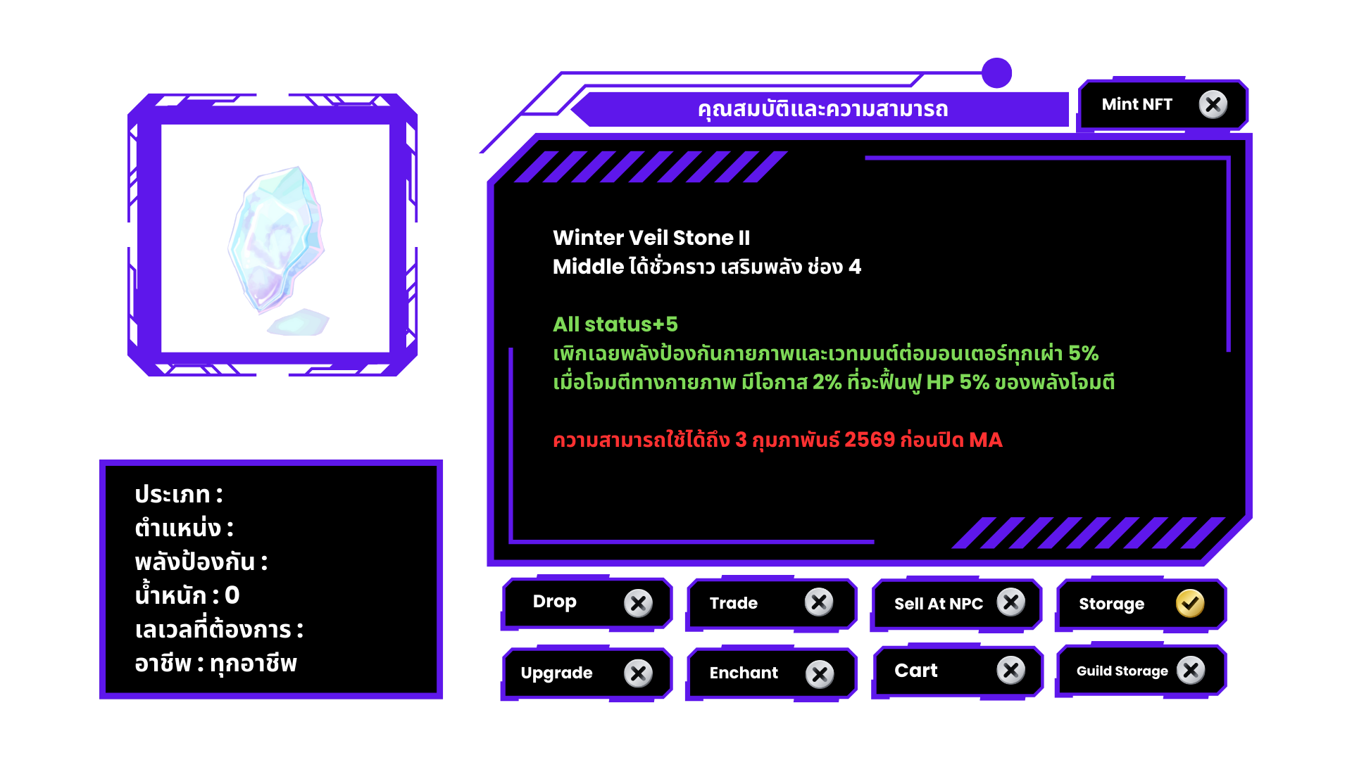 | ใช้จ่าย 100,000 Zeny | Snowmelt Fragment 2 ea | |||