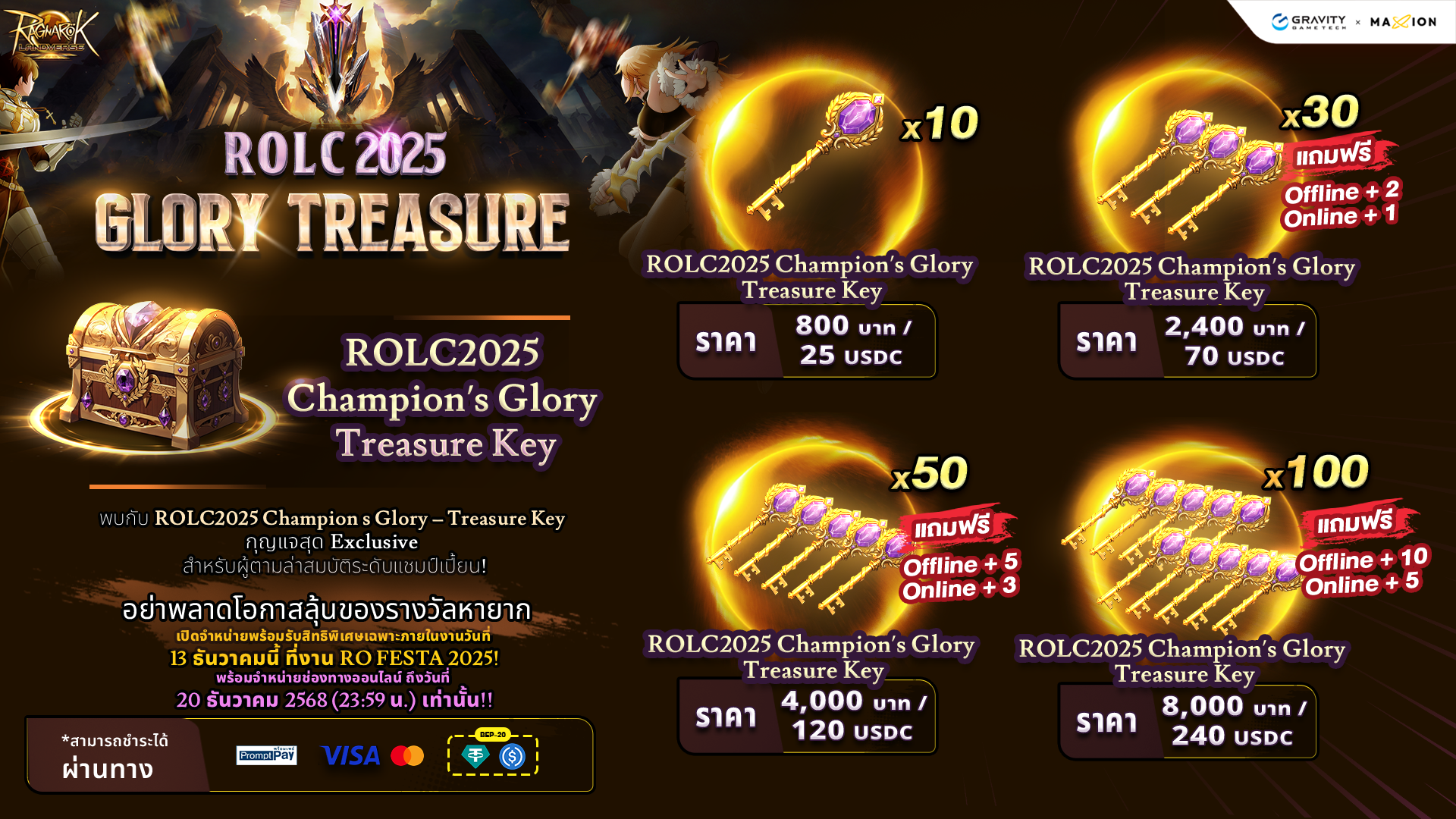 แถมยังได้รับ ROLC2025 Champion’s Glory Treasure Key จำนวนมหาศาลในทุกแพ็กเกจ!