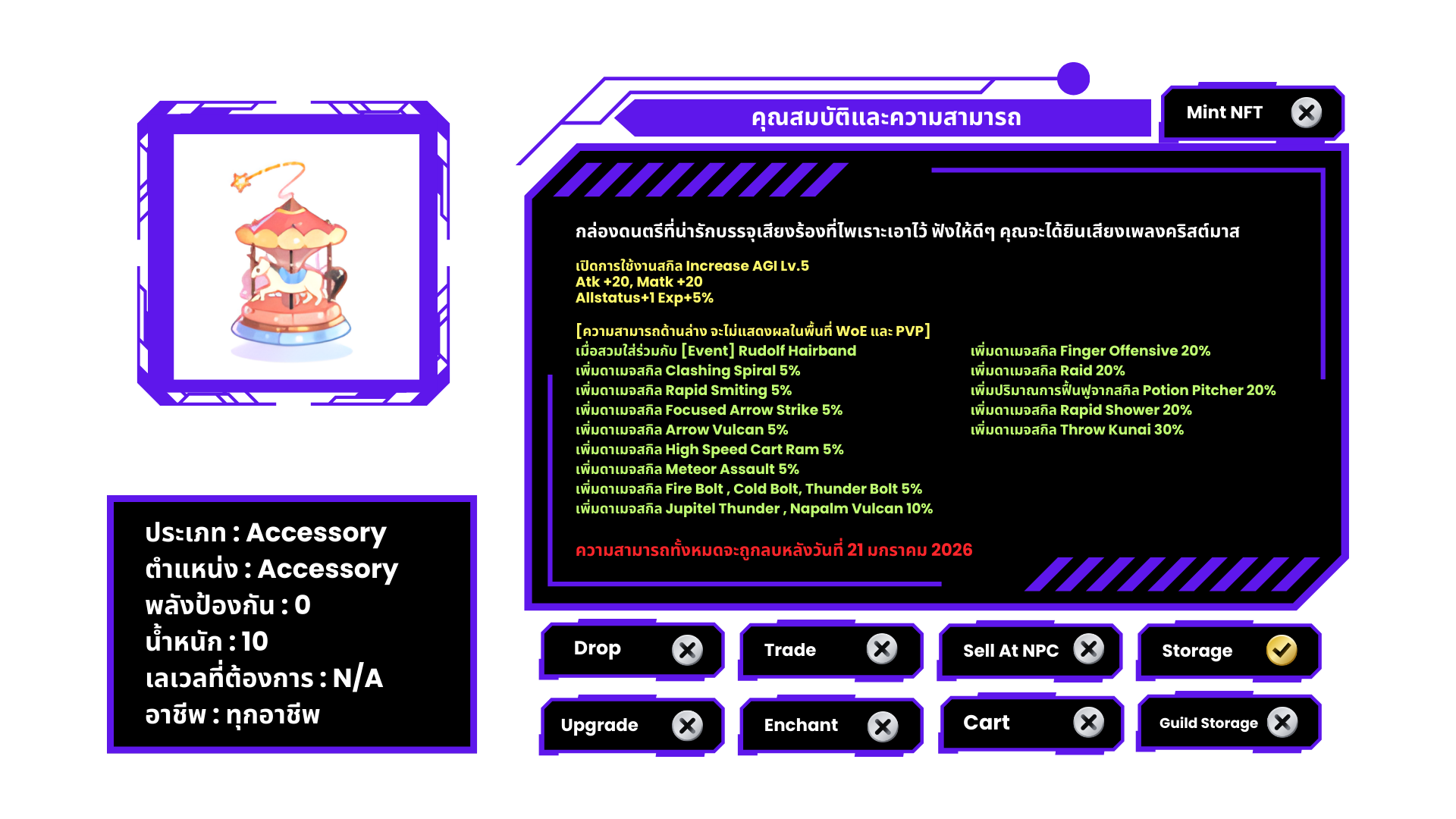 เมื่อกดพูดคุยกับ NPC ระบบจะ หัก Firecracker 40 ชิ้น และ บังคับใช้งานเอฟเฟกต์ในทันที