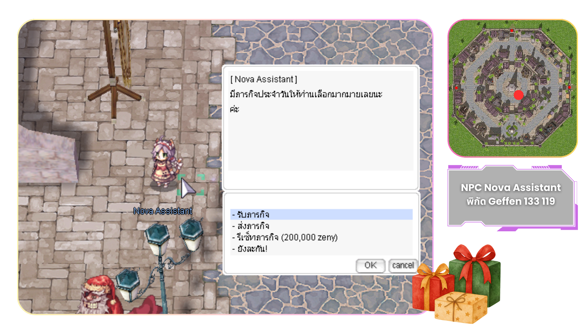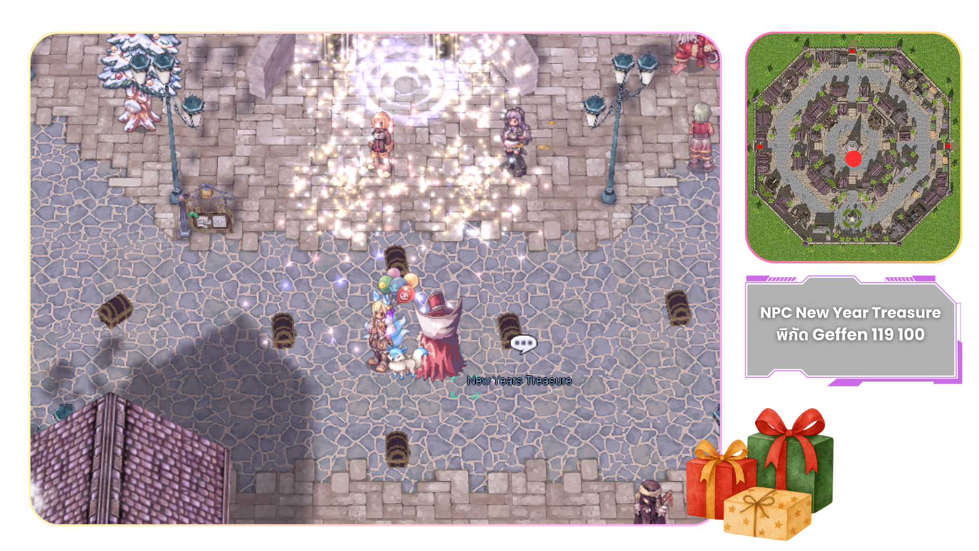 1.เดินทางไปพูดคุยกับ NPC New Year Treasure (พิกัด Geffen 119 100)