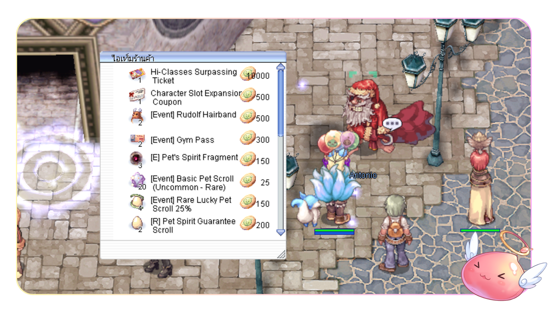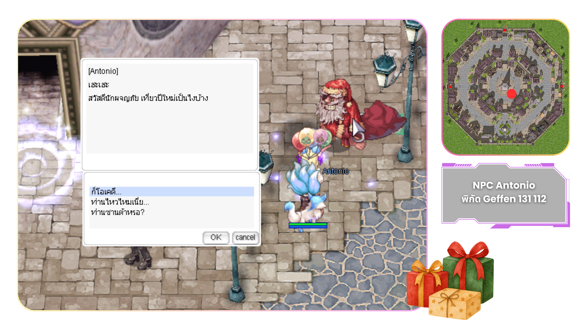 พูดคุยกับ NPC Antonio ที่เมือง Geffen (พิกัด 131 112) เพื่อใช้งานร้านค้าแลกเปลี่ยนไอเทมกิจกรรม