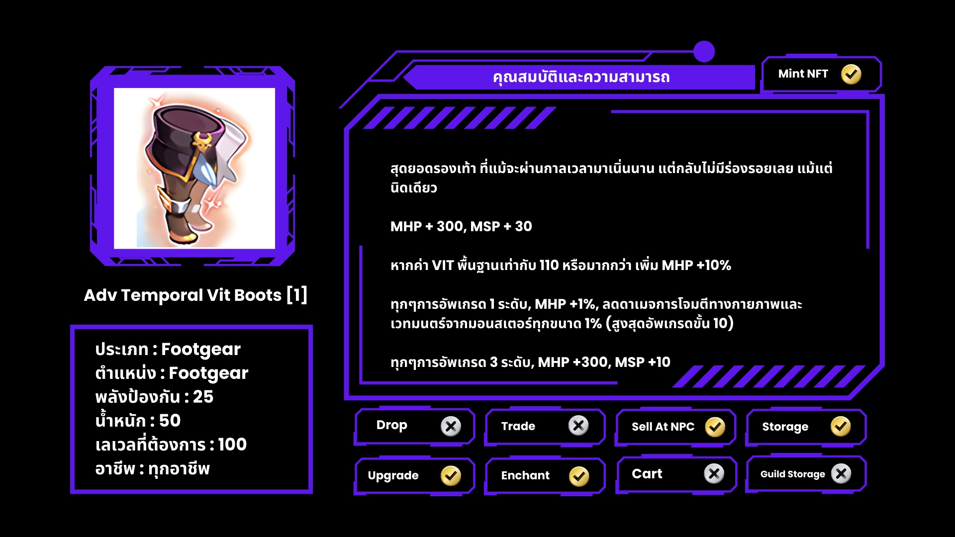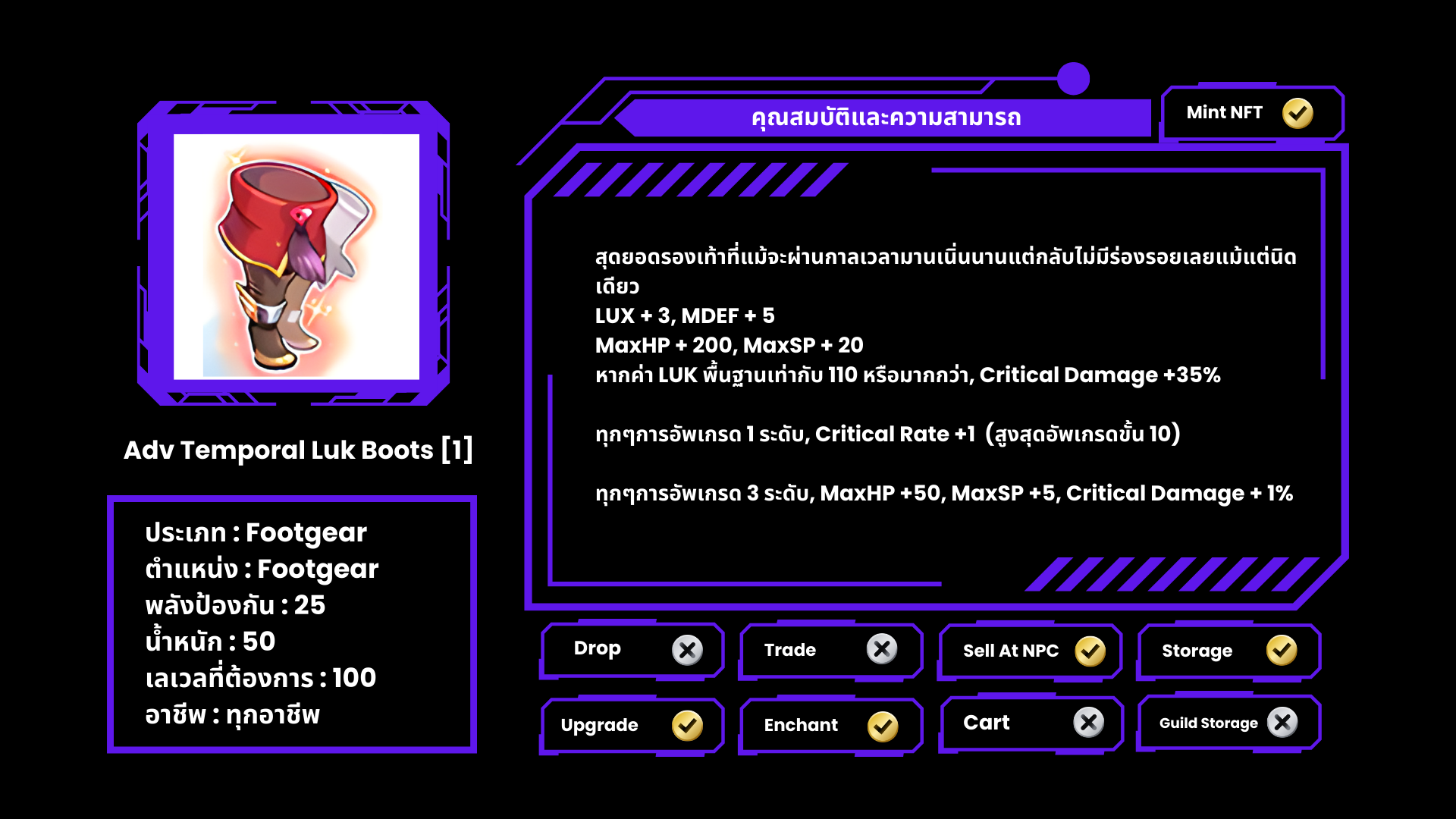 - Temporal Stat Boots [1] ที่มีออฟชั่น ( Stone ) จะไม่สามารถอัพเกรดได้