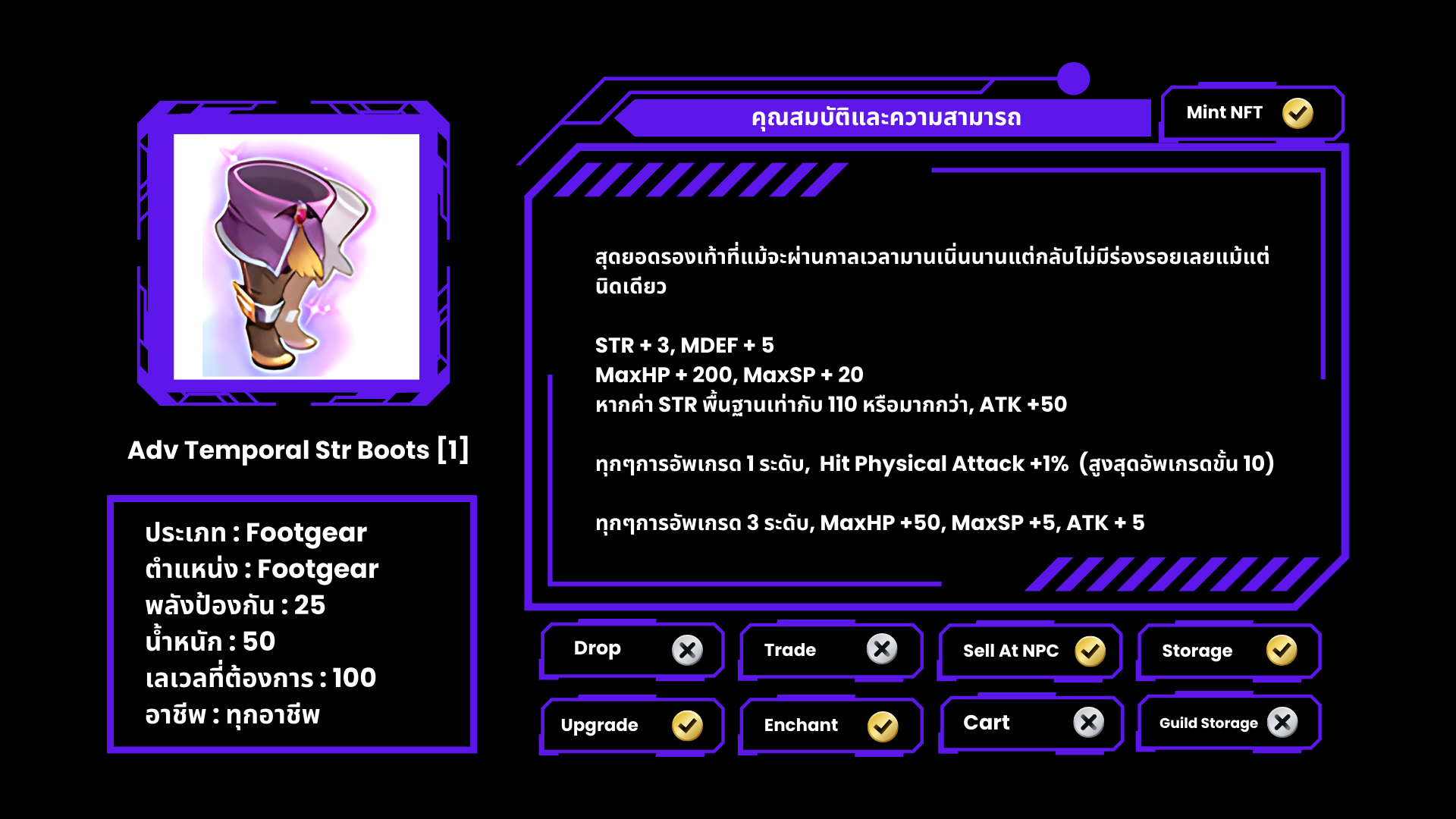 ต้องเป็นรองเท้า Stat Boots เท่านั้น