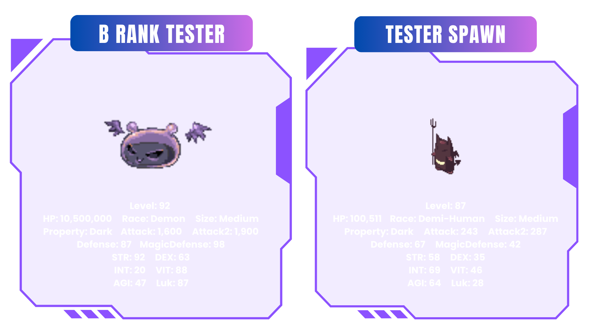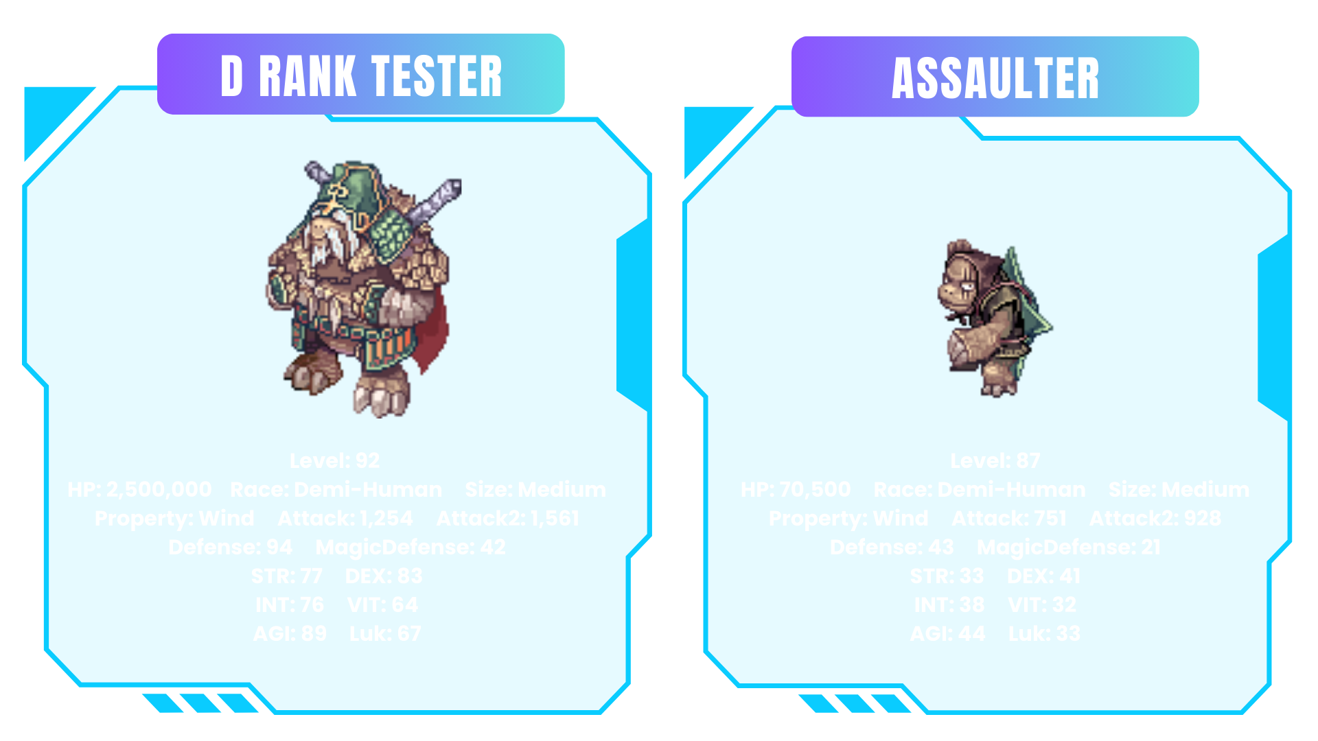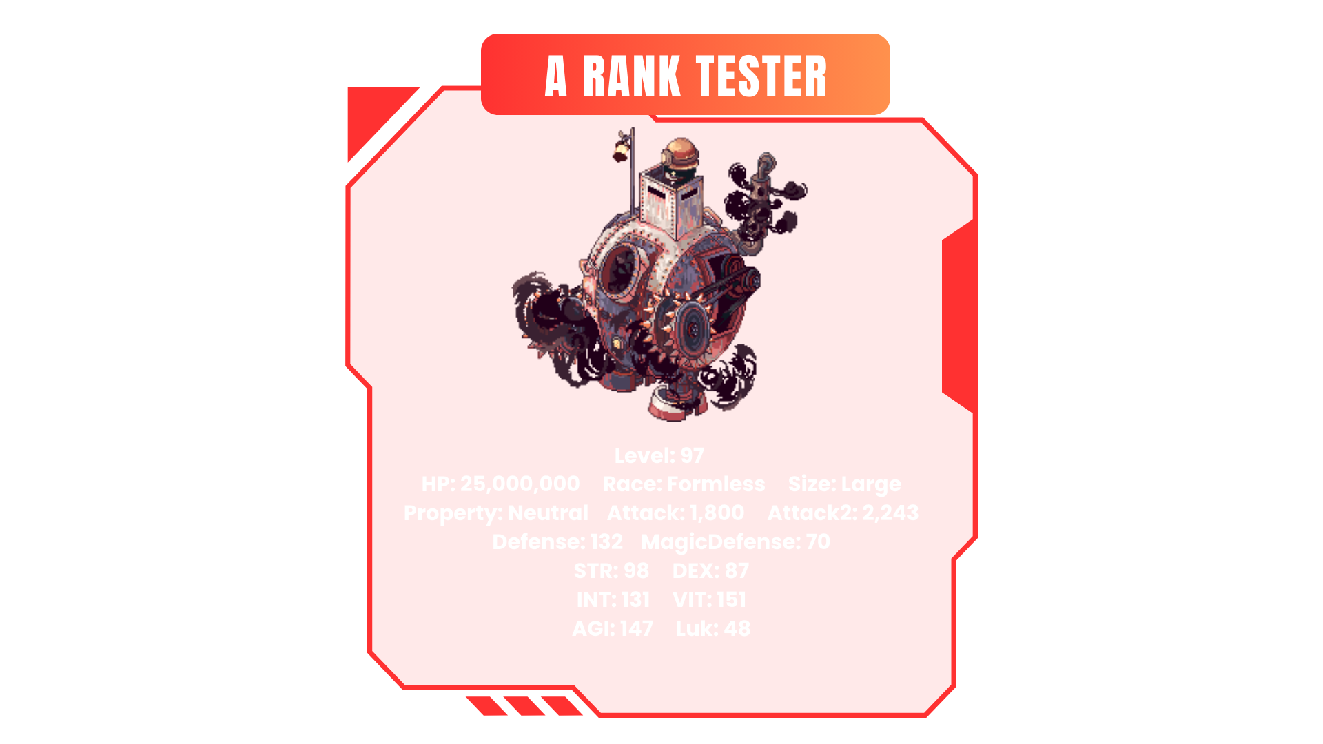 ลดดาเมจมอนเตอร์กึ่งมนุษย์ 5% (รวมผู้เล่น) เพิ่มความเสียหายมอนเตอร์ทุกประเภท 5% ATK+15 MATK+15 EXP+10% Drop+10% |